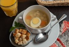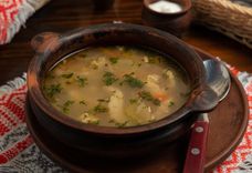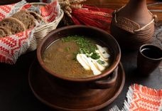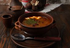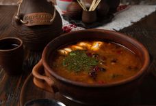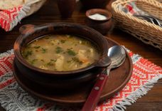 250/50/2 г • грибы белые, картофель, перловка, морковь, лук, сметана, зелень