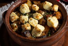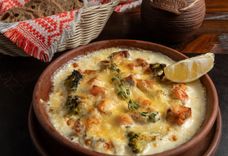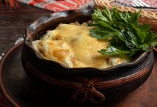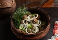 160/1 г • грибы шампиньоны, лук, сыр, сметана, зелень