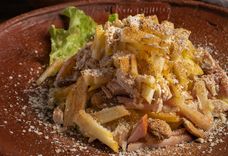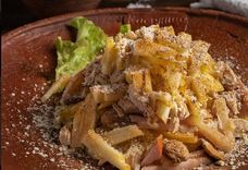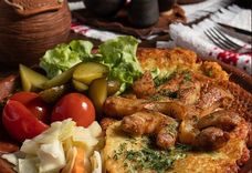 253 g • boiled meat, fresh tomatoes, egg, marinated mushrooms, salad mix, leek, balsamic dressing