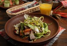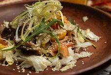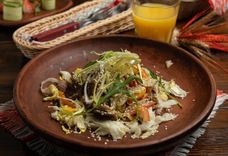 253 г • буженина, микс салата, помидор свежий, яйцо, грибы маринованные, порей, заправка бальзамическая