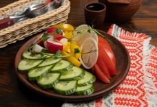 272 г • огурец свежий, помидоры свежие, перец сладкий, редис, лук