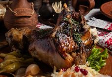 1000 г • рулька свиная маринуется в горчице и запекается в меду