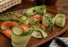 80/58 г • сёмга слабосоленая, огурец свежий, лимон, соус зеленый, зелень