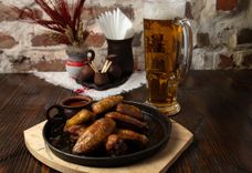 300/50/500 г • крылья куриные,чеснок,соус томатный, пиво в бокале • ЧРЕЗМЕРНОЕ УПОТРЕБЛЕНИЕ ПИВА ВРЕДИТ ЗДОРОВЬЮ
