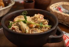 300/50/2 г • говяжий рубец, лук репчатый, морковь, сельдерей, чеснок,имбирь, острый перец, сметана, зелень